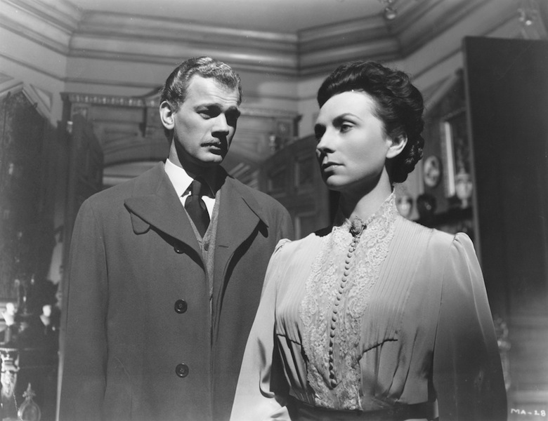 Welles built a mythic story of loss – as if expanding a world akin to that in Charles Foster Kane’s snow globe – from his intermittent voiceover narration, the montage-style editing, Bernard Herrmann’s music, Stanley Cortez’s lyrically ominous tracking shots in the Ambersons’ increasingly shadowy house, and the superlative performances of Joseph Cotten, Dolores Costello, Tim Holt, Anne Baxter, Agnes Moorehead (pictured above, with Cotten), Ray Collins, Richard Bennett and Everett Sloane. It’s a film about a young woman’s tragic spurning of her lover, her pampered son’s ruinous possessiveness, her unloved sister’s curdling, and it’s about the automobile befouling the pristine snowscapes and turning dear, old, turn-of-the-century Indianapolis into a city of ghosts. Graham Fuller