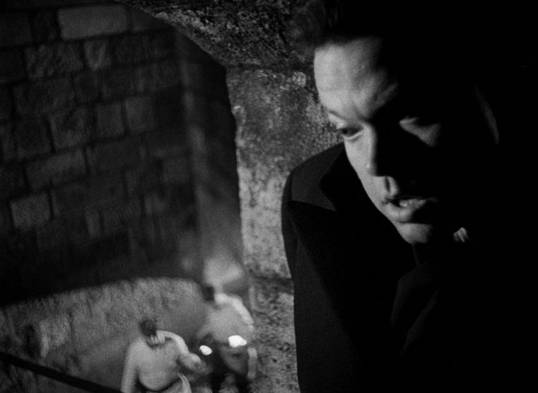 A “witness” dies, Harry’s coffin is disinterred. He’s not in it. Anna’s cat sidles up to Harry’s brogues as he stands in a doorway on the street opposite her apartment at night, a light falls on his face – though wholly predictable, Welles’s iconic entrance, late into the picture, is even more shocking than Gene Tierney’s return in Otto Preminger’s Laura (1944). Harry and Holly’s subsequent charged conversation atop and below the Prater ferris wheel on Leopoldstadt ends with Harry’s bland Kierkegaardian explanation of why more was accomplished culturally by Italy under the Borgias than by the supposedly peaceful Swiss in half a millennium (see clip below). Welles wrote the speech and Reed and Greene must have liked it, but as a specious justification of evil, it does suggest Harry let his principles slip during the Nazi era. The film climaxes with Harry’s flight in the cavernous Vienna sewers (pictured below).