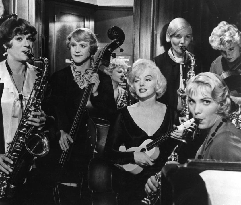 In what is undoubtedly one of the earlier recorded examples of the single entendre, the original ad campaign for Some Like It Hot yelled “Marilyn Monroe and her Bosom Companions”. Well, the posters may not have minced words, but there’s more than a little mincing on screen as Tony Curtis and Jack Lemmon escape the mob and the St Valentine’s Day massacre and go on the lam by joining a band. An all-girl band. Sweet Sue and Her Society Syncopaters, to be precise, who are to be holed up beneath the sheltering palms of a millionaire-strewn Florida hotel. That’s a whole lot better than being held up and wiped out by gangster Spats Columbo.