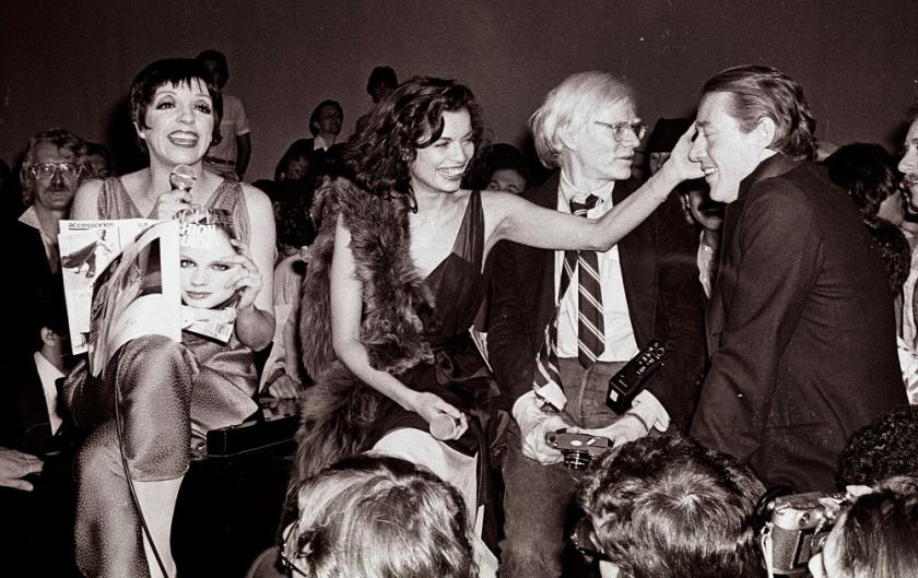 The dress code was sort of optional, a removeable feast. Stills from those golden nights show lissome Ganymedean bus boys on roller skates (pictured above by Allan Tannenbaum) competing to display more bare nakedness than the lady starlets whose dresses did an awful lot of accidental slipping. In this braless utopia Elton John was snapped copping a feel of Divine’s mammaries. Mick Jagger was also caught in a clinch with a white horse. It was as if no one was allowed into this free knocking shop unless they’d studied the Caligula chapter in Suetonius. Suspended between the arrival of the pill and of HIV, it was a perfect window of time for all comers.