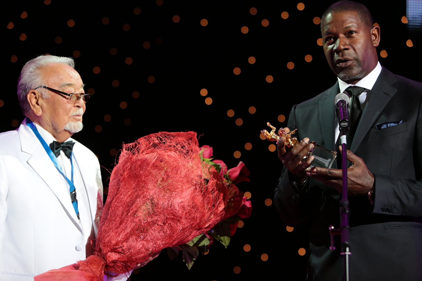 Guests this year included American film and television actor Dennis Haysbert, who presented legendary Kazakhstan actor Asanali Ashimov (both pictured below right) with a special award to mark his 75th birthday. A special section of the festival was devoted to four of Ashimov's best films, including End of Ataman, which was honoured with the State award of Kazakh SSR in 1972.