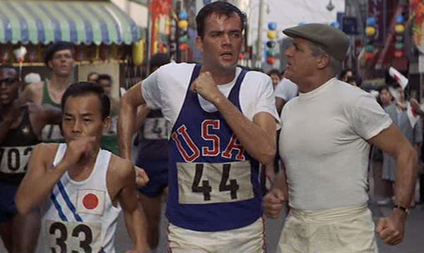 The piece is nudged from romcom to farce when Rutland decides that, despite Ms Easton's protestations, he'll share his portion of her space with a visiting American, Steve Davis (Jim Hutton), a member of the American Olympic racewalking team. Grant was evidently considered too senior to play Eggar's love interest, so he's cast as matchmaker to herself and Hutton, a role he relishes after being irked by Eggar's fiancé, a drab diplomat played by John Standing (Hutton, Grant and Japanese competitor, pictured above). It's all quite silly, but director Charles Walters shot it during the real-life Tokyo Olympics, and copious location scenes of both the city and various Olympic events (not least the intrinsically preposterous race-walking) lend colour to the proceedings. Music buffs will also relish the jazzy soundtrack by the great Quincy Jones, who was brought into the project at Grant's urging.