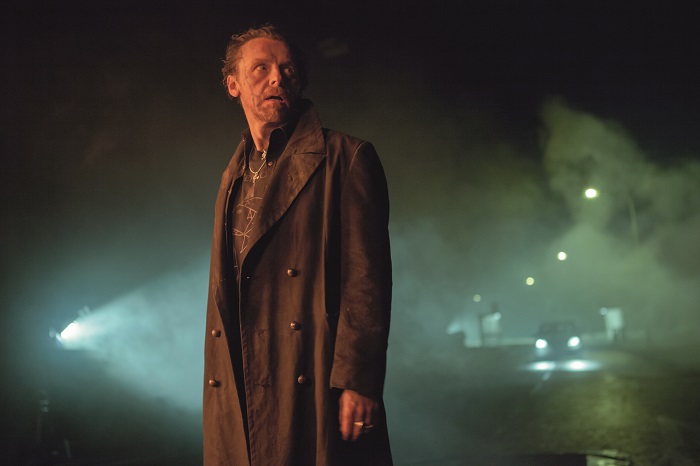 As is the way, the others have all moved on: Peter (Eddie Marsan), Steve (Paddy Considine) and Oliver (Martin Freeman) are all now squares in sensible jobs and grown-up marriages while, after a car accident caused by Gary, Frost’s character Andrew has gone so far as to renounce the sauce altogether. By trickery and deception they are all somehow recruited and glumly show up in Newton Haven to be met by Gary, a raddled, unkempt wreck in a black leather coat (Pegg pictured below).