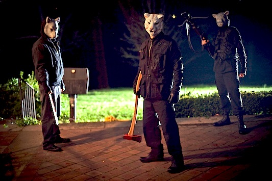 Simon Barrett’s screenplay has the nerve to pause at length to note the smug, feuding unpleasantness of the upper-middle-class Davisons at their family reunion, before a crossbow bolt crashing through a window into a neck begins their bloody, mysterious elimination. Petty sibling bullying, parental favouritism and new partners nervously brought home for approval all play out at a queasy dinner party from what might pass for hell, in a film where a gang of seemingly motiveless and omnipotent, beast-masked killers (pictured below) weren’t gathering in the dark to give new meaning to the term as, sadly for the Davisons, they are here. It’s like an Agatha Christie country house mystery crossed with Assault on Precint 13.