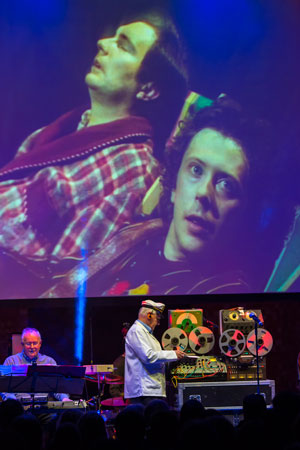 We were very much fitting in and fitting around what everyone else was doing, including dialogue. I remember the first gig that we did was at the Roundhouse, and I said, “Well, what we thought we’d do is to get rid of all the unnecessary stuff, like dialogue [laughs]. You know, all that stuff that gets in the way, and just give you the music.” I was being funny, but it was a kind of interesting thing to do, to push through the music as we had originally thought about it. But the audience get the music that was done for the show as it was, really. Often that’s quite difficult to do because in our effort to make it all fit to the pictures and the dialogue, we used to put in all sorts of strange time signatures: 5/4 bars followed by 2/4 bars and then back. That can make it quite difficult to play, but we try to keep it the same. And we were lucky enough to get some of the pictures and dialogue running along with it.