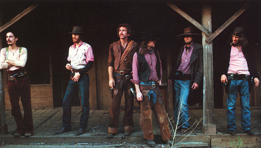 In an odd way that was one of the more faithful versions, even though he went to great lengths to get a young band to do it with him and to put horns on it. I thought it was really good. On that Eagles tribute album that happened, Common Thread (1993), where all these country artists did Eagles songs, they just basically did the Eagles' arrangements, which is not what you want. You want somebody like Lucinda Williams who'll simply turn the thing inside out and do something else with it, like she did with "The Pretender" on Looking Into You. It made me hope that the new songs I was writing would measure up. Nothing like hearing a compendium of what are supposed to be your best songs just before you put your new songs out (below, Browne – far left – in photoshoot for the Eagles' Desperado album).