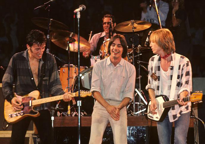 Emerging in his own right in the early Seventies, he was celebrated as one of the core members of the era's singer-songwriter boom (the proverbial "Mellow Mafia"), alongside the likes of James Taylor, Neil Young and the newly-solo Carole King. But despite sharing a fondness for melody, harmony, acoustic instruments and mellifluous chord changes, these were all very different artists. Browne's long career has run the gamut from the intensely personal reflections of Late for the Sky or The Pretender, via the hugely successful live album Running On Empty to the overtly political bulletins on Lives In the Balance or World In Motion. Ecological and human rights causes remain high on his agenda (Browne with Bruce Springsteen and Tom Petty at the Musicians United for Safe Energy concerts in 1979, above).