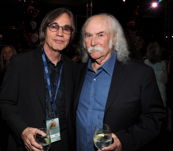 Glenn is another precocious guy. He used to tell me about Bob Seger before you'd ever heard any Bob Seger records because he'd been in Bob's band. Bob was a very big deal locally in Detroit, and Glenn sang me that song of his, "Big River", it was an incredible song. I said this about him in that film about Geffen [Inventing David Geffen] – Geffen told Glenn Frey's partner JD Souther "well you can make an album on your own but Glenn, you should have a band." What's great, what's really admirable about it is it was the truth. I'm sure it gave Glenn pause, like "whoa, you mean his songs are interesting by themselves but I have to be in a band? Hmmm." Well he put together the Eagles, and it was such a triumph and you see how Geffen's straight-ahead approach, his truth, his being honest about it led to a fantastic band and a really interesting development I think in music. Like that Common Thread album proved, the Eagles really influenced country music. At that time the Flying Burrito Brothers had formed and the Byrds had turned towards country music. We'd go see Waylon Jennings at the Troubadour in LA, and the Rolling Stones were influenced by Gram Parsons and country music. It's interesting that a band formed at that time would actually be that influential in country music (Browne with David Crosby, below).