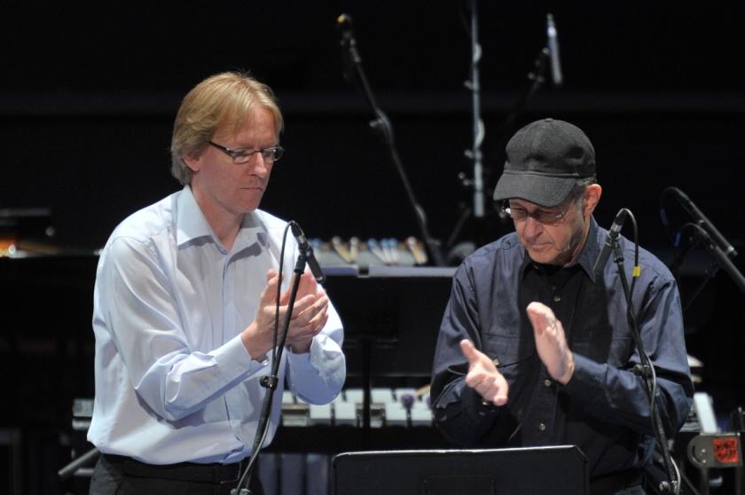 It kept up the almost tantric tension throughout. As far as how well it was played, it seems that as long as the notes are played correctly it’s more a case of collective feel and groove rather than anything else than makes the piece work. The fact that the Ensemble Modern clearly knew the piece well and are Reich specialists made the strings, clarinets and marimbas and xylophones lock in perfectly. Reich himself played understated piano stage right. The other essential element, beyond the mathematical conundrums, is the pulse, making the piece breathe like a Leviathan. If they repeated it at the Albert Hall they might look again at some of the dynamics as the sound was a little muddy and unfocussed at times, but even that seemed to add a not unwelcome element of psychedelia to what actually is a rigorous piece.