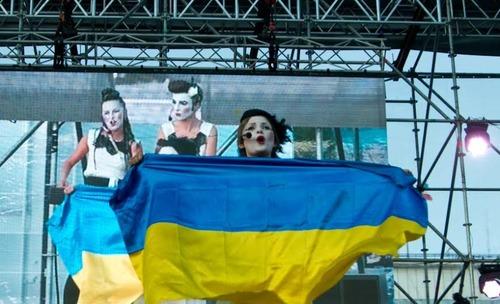The band grab lyrics wherever they can – one of their hits “The Rose of Donbass” uses as a chorus a Shakespeare sonnet “Roses have thorns, and silver fountains mud” and, although written before the revolution, references the eastern city that has been a hotbed of seperatists. The other Kiev band who were astonishing were Dakha Brakha, who stunned everyone at this year's WOMAD in Charlton Park.