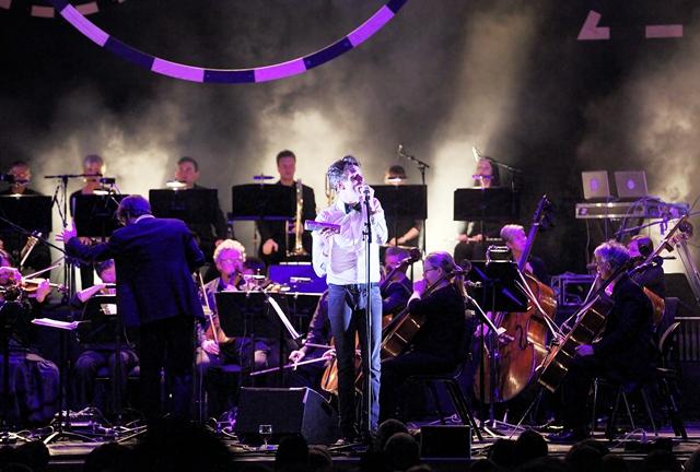 It’s not quite Iggy Pop strutting across the hands of the crowd, but Efterklang’s singer Casper Clausen's departure from the stage reinforces the bond the Danish mood musicians have with their fans. Trying to keep upright while wobbling on the backs of seats, he is held in position by those close by. This isn’t about attracting attention, but a bridging of the gap between artist and audience. Earlier, Clausen and bassist Rasmus Stolberg had retired to the side of the stage to take in the Northern Sinfonia’s performance of their music. At times, Efterklang are as much spectator as musicians.