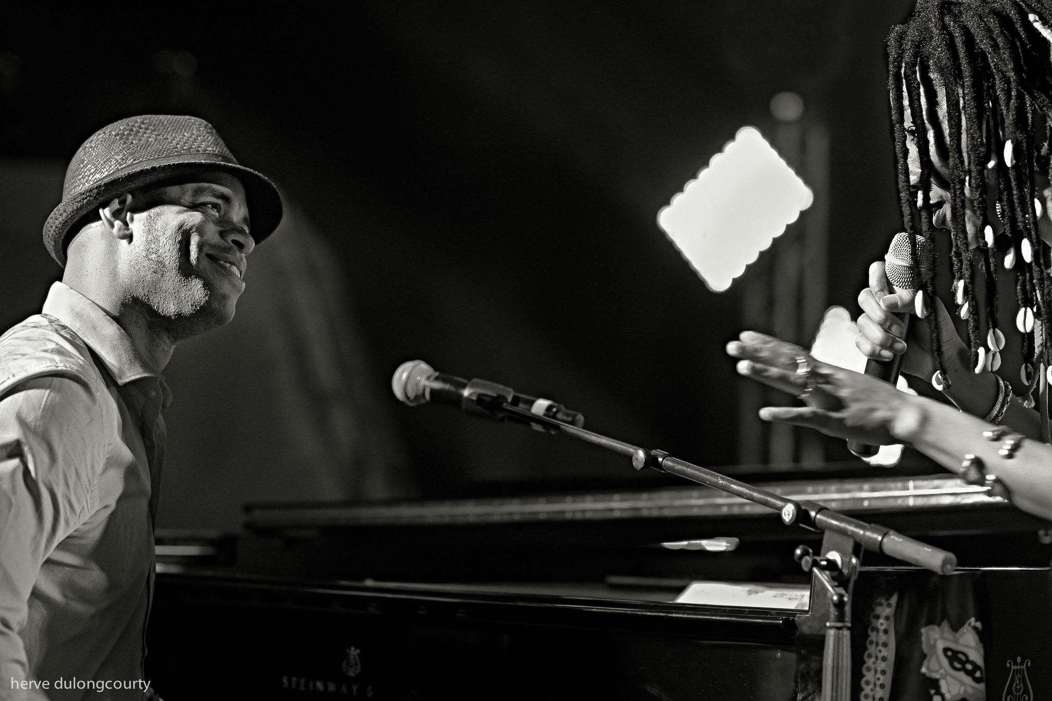 The dancing rhythms of “Yemaya” set the tone, as Fonseca’s piano raced away and Diawara squared up to the audience, finger wagging, her voice rough-edged and stern. Next came “Sowa”, ushered in by a “Superstition” synth groove, and “Connection”, which saw Fonseca pounding out octaves, his hand a blur, and launching solos for the rest of the band with bursts of swaggering montuno and muscular, cross-handed piano slides that made the keyboard ripple.