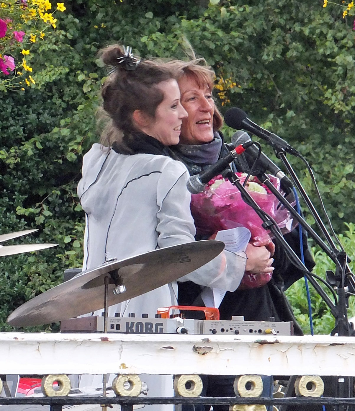 If you figure in the career trajectory of a star who achieves iconic status and the fame that goes with it, there are always journalists, authors and fans on your case. I thought all this had simmered down until in August this year I was contacted by Natasha Ryzhova Lau (pictured right with Mary Finnegan) – a Russian fashion designer and Bowie fan living in Beckenham. She was appalled to discover that the Victorian bandstand where David played in 1969 was dilapidated and urgently in need of repair. No money was forthcoming from a cash-strapped council, so Natasha decided to stage a fund raiser by recreating the original event as Memory of a Free Festival.