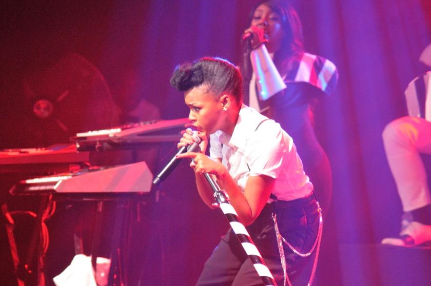 Before Janelle Monáe even materialises at Brixton’s O2 Academy, her presence is already felt in the stagecraft. Lab-coated, bow-tied techies unsheath the instruments from their black covers, revealing a glimmering monochrome set-up in the centre of a giant white cube reminiscent of the "Q.U.E.E.N." video. Three - count ‘em, three - men see to the polishing of Monáe’s microphone. The build-up is every bit as meticulous as the stunning 90 minute set that’s to follow.