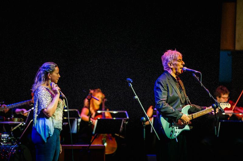 Then there are the guests. Michael Sheen appears without fanfare for an avant-garde rendition of the Dylan Thomas poem “And death shall have no dominion”, and Charlotte Church (pictured above with Sheen and Cale) gives a wonderful, near-impromptu backing vocal performance later in the set. This is a very different kind of Cool Cymru to the brash flag-waving of the late 1990s. World-class talent no longer needs to shout to be heard.