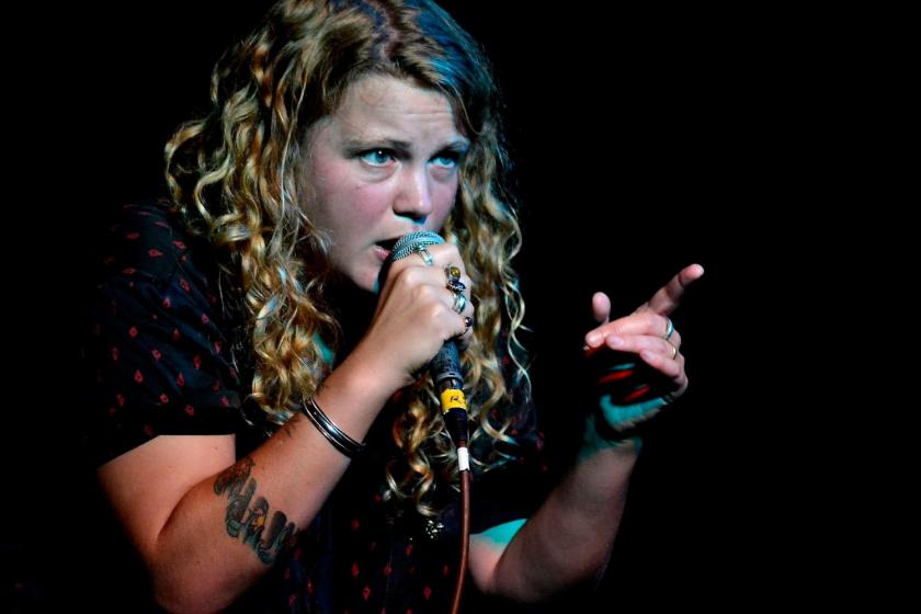 Kate Tempest's long blonde-brown hair flailed as she prowled the stage, red-faced from exertion, adhering not a jot to the media’s tick-boxes for femininity. She is smaller, by far, than her backing band, dressed down in baggy sweatshirt and jeans. Unlikely star material yet she exuded such energized passion and righteous charisma that, by the end, as she encored with a poem that, like so many tonight, seemed to allude to the troubling political developments of last week, she had the audience rapt, completely engaged. “We never saw it coming,” she announced towards the close, “like all the best tricks.” She is not only a poet, she’s a powerful orator. There must have been many present who wished any one of our politicians could muster this much fire and straight-speaking.
