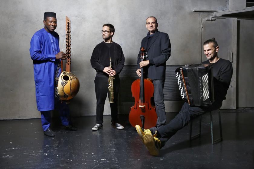 Combine four super-talents, masters of their instrument, and you might well expect a battle of egos or a clash of modi operandi. Not least, as in the case of Les Égarés, a quartet made up from two seasoned duos – the virtuoso jazzers Vincent Peirani (accordeon) and Émile Parisien (soprano sax) on the one hand, and the entrancing creative partnership of Ballaké Sissoko (kora) and Vincent Ségal (cello) on the other. And yet…