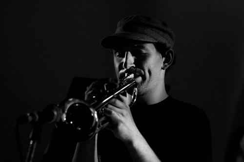 Halsall, the young Mancunian trumpeter now on his fourth album, Fletcher Moss Park, takes to the stage to a sold out house, with a four piece line-up up of pianist Taz Modi, Rob Turner on drums and bassist Gavin Barras. Halsall stands only when he plays, otherwise crouching on the decks as pianist Modi plays in with an elegant, percussive solo on “Music for a Dancing Mind”, the first of several tunes from his On The Go album. When Halsall plays, he demonstrates a sky-blue tone smeared with cloudy spirits, a full-cream sound in an astral body, a spectral element.