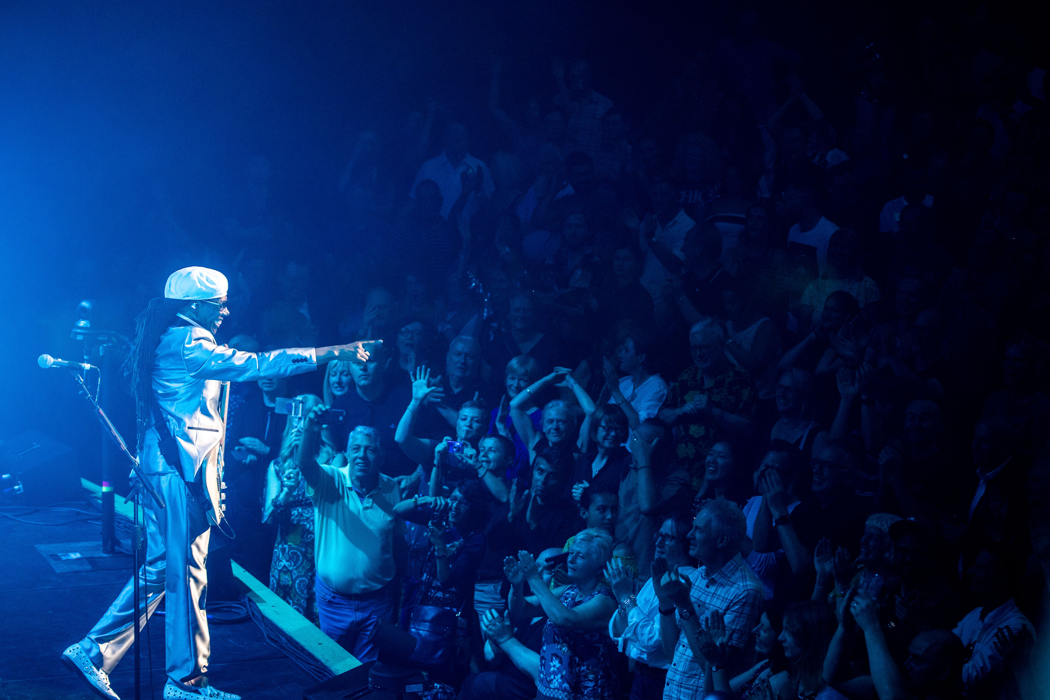 It is now 23 years since Rodgers’s partner in Chic, bassist Bernard Edwards, died, and also a full decade since the new Chic re-formed and started touring again. So the touring package is familiar and people know exactly what to expect; there was not only much glitter on the stage but plenty among the audience too. This was a crowd which had come to get down to the funk and dance. “This was my era,” one eager participant told me beforehand. Nothing was going to spoil this party...
