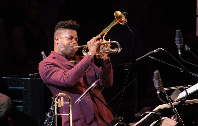 Springs gave a sultry rendition of “God Must Be a Boogie Man”, also from Mitchell’s Mingus album, while for “Weird Nightmare” her duet with Shabaka Hutchings on bass clarinet was beautifully eerie. The orchestral balance for the vocal numbers worked much better, and the strings were able to make themselves heard. It’s boring for critics to nitpick about the Royal Albert Hall’s temperamental acoustic, yet there were familiar problems with definition and balance, especially in the busier instrumental pieces. The dialogue between Christian Scott’s trumpet and Bart van Lier’s trombone In “Goodbye Pork Pie Hat”, for example, was extremely slick, but made the string section almost inaudible.