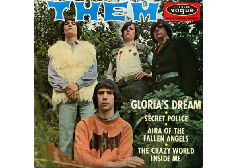 There’s something wrong with the picture above. It’s the sleeve of a French EP issued in August 1966 credited to a surly looking band called “Them”. The chap standing in the middle has what appear to be bullet holes in his shirt, but where’s the band’s frontman and main songwriter Van Morrison? Further confusing matters, the EP was also issued with the band credit altered to “The Belfast Gypsies”, where otherwise the sleeve was the same (pictured below left).