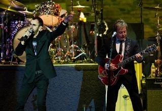 Starr certainly looked in fine fettle. The trim, neat, black-clad 70-year-old has outlived his doppelgänger Yasser Arafat as well as two ex-mop tops. He seemed in a good mood as he opened with "It Don't Come Easy" and "Honey Don't", the latter an old Carl Perkins number recorded by The Beatles. His voice was not at its most powerful, but there was a lovely rock'n'roll groove going on. It was not great art, but his All Starr Band made it sound tight in the right places and loose in the right places, like the world's best pub band.