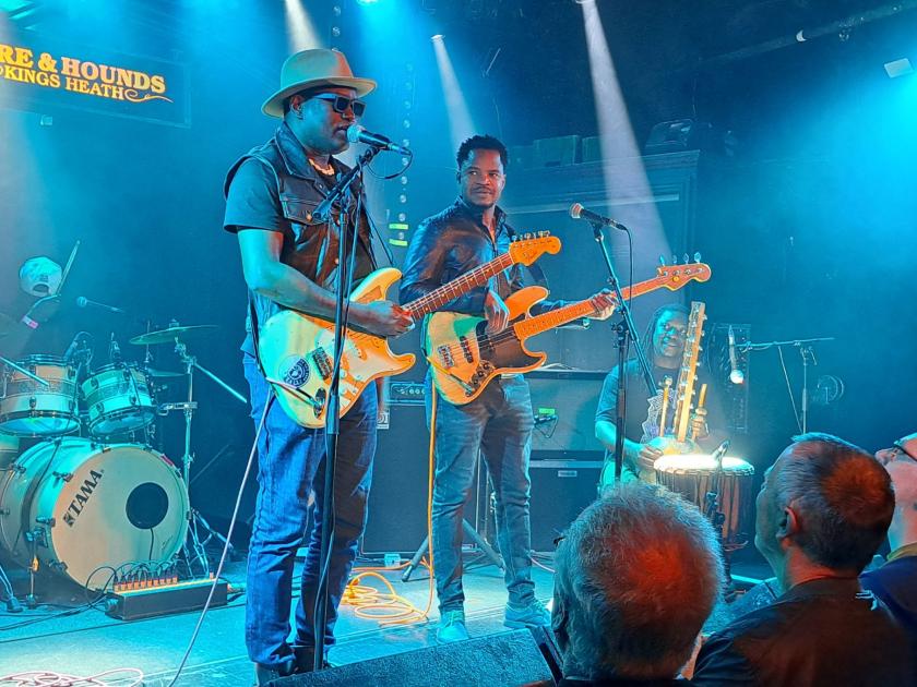 The four-piece band have been around for more than ten years, with four very well received albums to their name, but have still managed to find themselves falling foul of UK immigration policy. In fact, only two of the band (vocalist and guitar player Garba Touré and bassist Oumar Touré) were able to secure work visas for their present tour. Hence, drums, kora, additional percussion and extra guitar are being provided by musicians who had only had three days to learn the band’s present set before hitting the highways and byways of England. Not that this seems to matter, luckily. Songhoy Blues were on fire from the moment that they threaded their way through the crowd to get on stage at Birmingham’s Hare and Hounds to their final bows at the end of their head-spinning and hip-swinging performance.