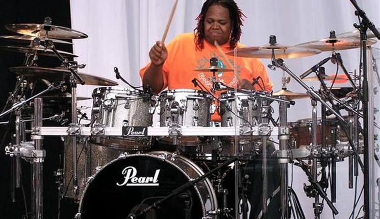 “Contusion” also gave the audience its first real contact with the band’s incredibly powerful rhythm engine. The two drum-kit specialists Stanley Randolph (pictured below) and Christopher Bounds, with percussionists Munyungo Jackson and Fausto Cuevas III, are at the heart of this band, and the variety of ways in which they can propel it into life are a constant delight. From the insistent backbeat of “Ebony Eyes” to the full-on funk explosion of “Black Man” to rocking out in “All Day Sucker”, this quartet delivered a non-stop masterclass.