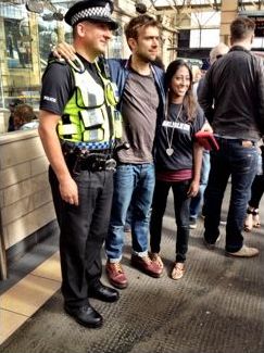 But if the original intentions were clear, the strategy took a while to mature. At first the talk was all about promoting huge gigs to rival Live 8, with African and western artists performing on a strictly equal footing. It was about massive exposure, huge marketing impact and the bludgeoning of cynical western media into submission. We have Mr Albarn (pictured below with admirers at Carlisle station) to thank for readjusting our ambitions. It was he who told us in no uncertain terms during one memorable meeting outside a café in Westbourne Road that we were pissing into the wrong pot entirely. We had to go back to basics, he said, and patiently forge links between the worlds of western rock, pop and urban music and the musicians of Africa. It had to happen at a musical and human level, first and foremost. Image and marketing were secondary concerns. And so that’s what we tried to do.