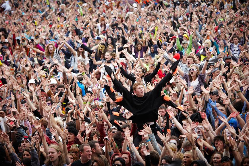 Back in the wheelbarrow, we lose our gang and head for an open air clubby area selling rum called Sailor Jerry's. The crowd cheer Maxim and his barrow and his crutch-dancing, but the music is hen party cheese. It was fine to start with, but it's the way they pile on relentless familiarity that's a turn-off. A bit of Motown, a bit of Madonna, but then Lulu's "Shout"? Too much. Happily it's time to head across the way to the Bollywood tent where maverick US house DJ Derrick Carter is playing the final set of the night. Barrowing into the end of Fatboy Slim's set, it's all crazy from here. Maxim propped on his crutches, Rico stomping, and Derrick Carter smashing it with the very best sort of house music, eclectic and ranging through swing-jazz to techno with style and punch, easing the pressure occasionally but never letting up. E'd up girls collapse in a giggling pile in the wheel-barrow, stunning women in polka dot dresses, dripping with sweat, dance around it, and on and on until we decide to take Maxim back across the fields and far away. And, boy, that took some doing. My legs will be having words with me about it for some time to come. Probably until this time next year. I'll be back.