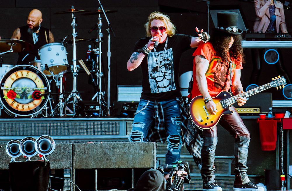 Others that spark with life include a version of “Slither”, arguably the most famous song by Slash and McKagan’s post-GNR outfit Velvet Revolver, and a solid pass at the “Civil War”, a juicy post-Appetite titbit they ended up squeezing onto 1991’s Use Your Illusion II. Slash and fellow guitarist Richard Fortis axe-spar regularly, although the former’s manner is poised, electric cool whereas Fortis is prone to unpleasing eyes-closed orgasm faces during solos.
