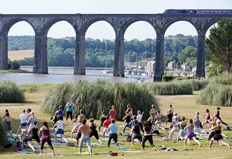 The atmosphere is superbly benign, the setting glorious, the food – by festival standards – superb, security, negligible and the people of all ages friendly. There are musicians on the bill, writers, gardeners, fashion designers, cooks, and a bewildering array of fringe events from discos in hedges to films projected in trees. (Pictured, early-morning yoga in front of Brunel's viaduct). But above all it’s the festival as an end in itself that’s important. What’s actually listed in the programme feels the least important element.