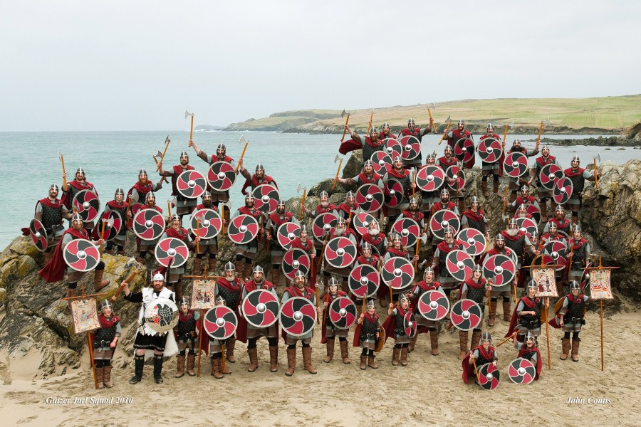 While the British Museum gears up for its blockbuster exhibition, in Shetland Viking and Norse identity is celebrated in the annual 12 Up Helly Aa festivals. All night “squads” of Vikings, led by the “Gayzar Jaarl” (head Viking) drink and dance their way in a riotous frenzy around the Shetlands. Those involved will have spent most of the preceding year crafting their costumes, their furs, shields, weapons, the long boat that is ceremoniously burnt, all funded out of their own pockets. In turn thousands of people come from all over the world to be part of these pagan “fire festivals”. They are also a chance for Shetlanders to explore their very real connections with Vikings, the Norn language (precedent to modern Norwegian and Norse) and Scandinavia.