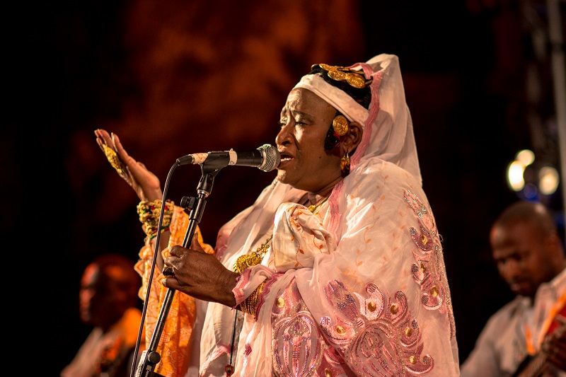 Khaïra Arby (main picture) looks regal with her plush blue dress plumped out, and dramatic head wrap. She sits on a wonky plastic chair which is incongruous in a 12th-century fort. Her face is lined and tired. She has just got off a plane, after 14 hours’ travel from West Africa. Just stepped out of a war zone and a country that is dominating the headlines: Mali. “Yes, it’s true, I’ve seen it myself, they will cut off your tongue if you sing. I’ve seen friends who’ve had their hands cut off for the ring tones on their mobile phones”.
