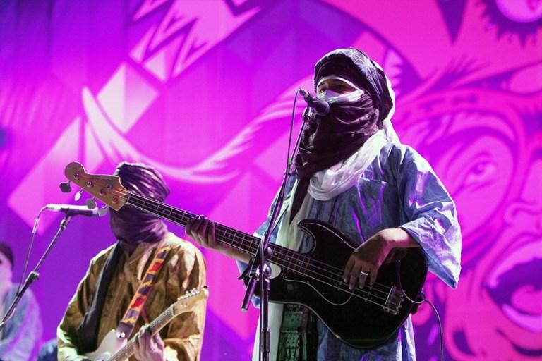 So what is it then that Tinariwen’s audience love about them? For this was largely a crowd of the already converted, thrilled to be seeing their heroes play live again. Is it the incidental bass drone they collectively make, which subtly contributes to the hypnotic pull of every song? Or is it the wiry curlicues of electric guitar that evoke the American blues but also spiral off into other far more exotic realms? Or maybe it’s the fact that, just like Status Quo or the Ramones, their audience knows exactly what they are going to get, and they just can’t wait to get it again?