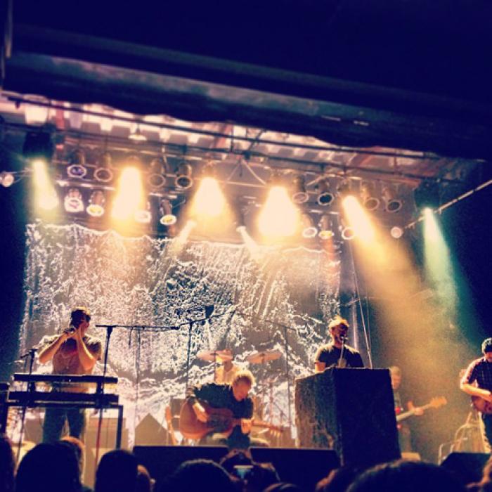 Fresh from Volcano Choir’s first European gig ever in Dublin, Vernon and the band hit Bristol last night (pictured below right), the first of only two British gigs – to promote first, and foremost, their latest album. Although the band is clearly a collective, Vernon is the main focus of attention. Volcano Choir has always felt like a follow-up to the two Bon Iver albums. The musician who broke through with For Emma, Forever Ago, the album that was produced in the aftermath of heartbreak and in a remote forest cabin, can’t escape the aura of vulnerability that has always been reflected in his trademark falsetto. But the cohort of rock musicians around him, with no less than three guitars, provide him with a different context, as if he now might own the world, rather than retire from it.
