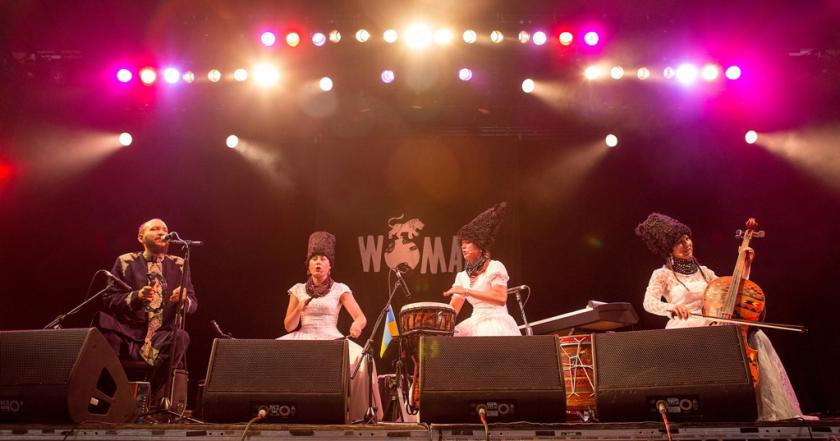If I had to pick the highlight of this sun-drenched WOMAD it would have to be the fresh, emotionally charged set of Ukrainian band Dakha Brakha. I can’t recall seeing such a unanimously positive response for a relatively unknown band at the Festival. It wasn’t as if the music was obviously crowd-friendly, and parts were quite challenging, mixing soulfully sung Ukrainian folk tunes with other influences – Nigerian drumming, Bulgarian singing and Japanese koto.