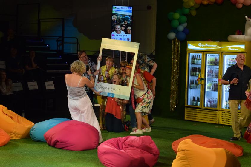 Beanbags (candy-bright) are strewn across the turf (astro), bathed in the glow of the vending machines ranked across the back of the stage. “Work Hard, Play Harder” enjoins a balloon sign, while arrows point the way to “Groves of Delights and Crystal Fountains”. Welcome to the festival-themed office party of Mountain Media, a Shoreditch-fabulous social media firm, whose employees’ idea of a good time perhaps inevitably involves Hawaiian shirts, selfies (shared on the video screens that flank the stage) and plenty of booze.