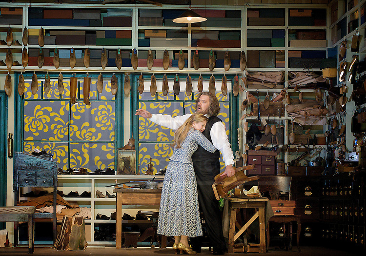 Jones's view of a Nuremberg that veers wittily between 16th-century pomp, 19th-century bourgeois dress and a dash of the later artistic Germany - a photo of Lotte Lenya and Kurt Weill is propped up on the cobbler's bookcase - is not without its inner demons. Its heart of darkness is located, tellingly, in Sachs himself. Perhaps it takes a singer who has also brought us a definitive Sweeney Todd to embrace the murk as well as the humanity. Terfel really does look like a master who thrashes his apprentices in a bad mood. And it doesn't get much worse than the slough of despond into which the violent folly of St John's Eve casts him: Jones has the curtain rise on a seriously depressed Sachs with the first notes of the deeply melancholy Act Three Prelude, and we see him bolting for freedom, like the young lovers tried to do before him, only to return to bring order to the day of a great song contest.
