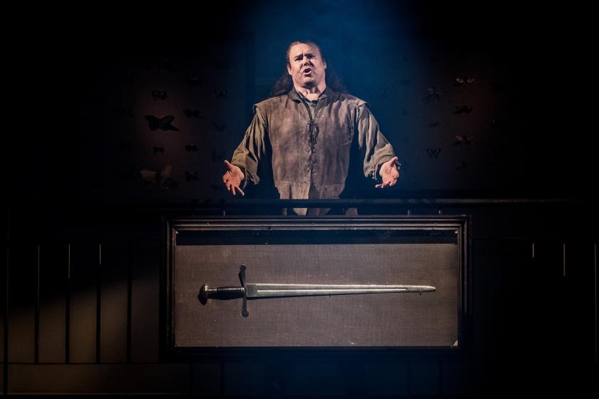 It’s a single-set affair – a large balconied room of a stately home. But set designer Jamie Vartan and lighting designer David Plater create so much variety that it is easy to forget that there are only minimal prop changes between the acts. Director Stephen Medcalf focuses on the narcissism, even sadism, that leads Hunding to exploit Sieglinde, and Wotan to exploit Brünnhilde, the connection apparent in the shared visual style between the first two acts. Medcalf is comfortable with the incongruity of Hunding’s home in the first act becoming Wotan’s in the second. Both are collectors, Hunding a Victorian naturalist, his home filled with glass cabinets of stuffed animals, Wotan of military regalia. Even the sword Nothung sits in a glass display case, and of course Sieglinde and Brünnhilde are similarly treated as trophies.