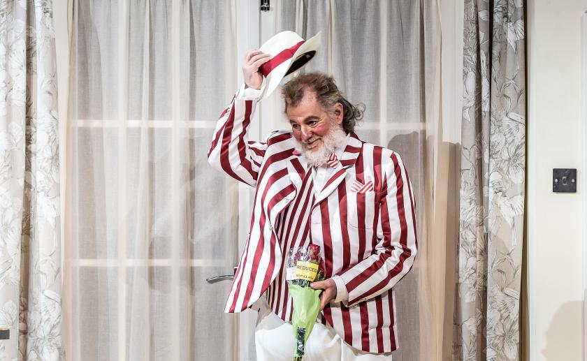 The curtain opens on the Star and Garter – a local pub-hotel where oak panelling and floorboards have long since given way to lino (the posh sort) and textured wallpaper, bright with hot-pink accents. Holding court at the bar is ageing hippy Sir John Falstaff (KBE) – a symphony of crushed velvet harem pants, clashing-print waistcoats and mandarin collars. He has his practised eye on yummy mummies of Windsor Alice and Meg, whose riverside villas boast breakfast bars and walk-in larders (well-stocked, no doubt, with Pinot, nut milk and Waitrose essentials).