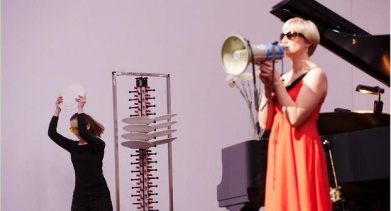 None of the strange games from Gray or from lighting designer Franz Peter David (who provided pretty but hyperactive dislocations of his own) could match what was going on in the music. Here, the Britten Sinfonia, conducted with spirit by Tim Murray and rewarded with a staged presence, were presenting a skit of their own. Scales, more gin-and-tonic than diatonic, hurtled and hocketed around the ensemble and through the voices of the cast, with little or no regard for comfort or range. Chunks of Beethoven's Ninth appeared as if they'd been shoved through a mincer. Along the way we visited demented arrangements of Auld Lang Syne, a French revolutionay song and Schiller’s Ode to Joy.