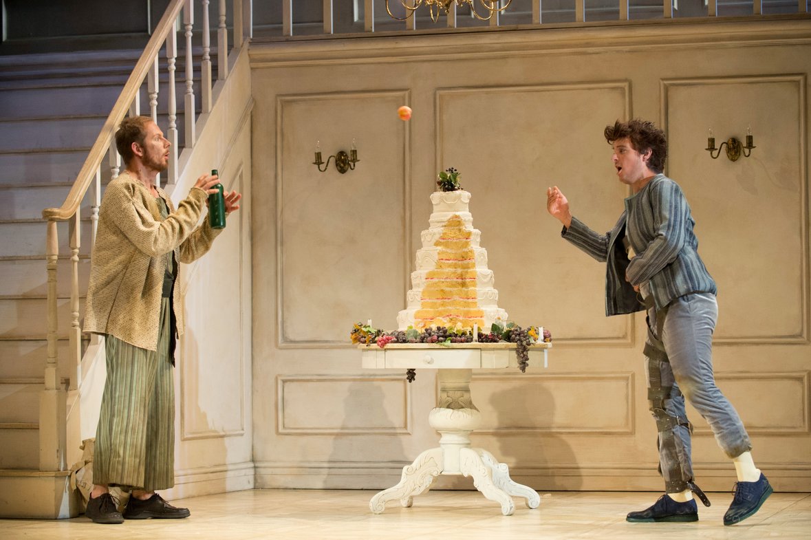 The score is hero here, carrying some rather uneven singing through an evening that charms more than it impresses vocally. Pedley’s Medea (pictured above) is seductive and competently delivered, but occasionally sits just under the note, curdling the sweetness of her blandishments. An ailing van der Linde failed on opening night to relish Cavalli’s swooning arcs of melody, offering a strangely muted performance in which he was dwarfed by both his rival women. Catrine Kirkman’s Isiphile was sweetly sung, never over-weighting the composer’s delicate lines, while a surprisingly tender Delfa from Michal Czerniawski, a cleanly comic Orestes (Piotr Lempa, pictured below with Peter Aisher) and a stand-in Demus (Aisher, stuttering wonderfully) rounded out a true ensemble cast.