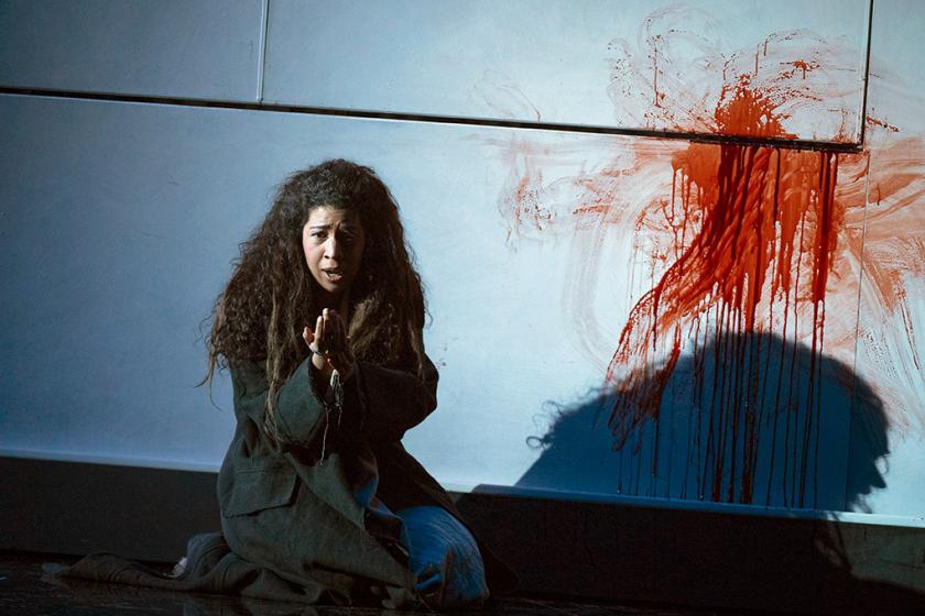 He turns the Act II villagers into, presumably, fascist workers and kits out the anti-hero Don Carlo, supposedly disguised as a student, in something similar. He manages swift scene changes, with the help of Raymond Bauer’s highly efficient, if blockish and not very elegant or atmospheric abstract rolling-screen sets; and he hints at connections between the idiotic Hispanic revenge, that overrides all other duties of love, gratitude, intelligence and common humanity, and Spanish attitudes to the Church (the friars ridiculed as a chorus of mitred, bloodstained bishops), and to blood in general – the sort that flows down the generations, as well as the sort that flows when you bleed.