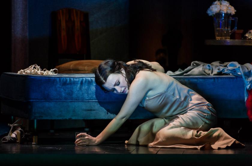 Each act began with Violetta lying on her bed, lit in a silvery, spectral moon-wash. It’s an evocative touch, which mirrors the yearning string theme repeated from the overture onwards. By the moment of Violetta’s final collapse, there’s almost, dare one say it, a touch of liebestod about the way she's only free to love in death.