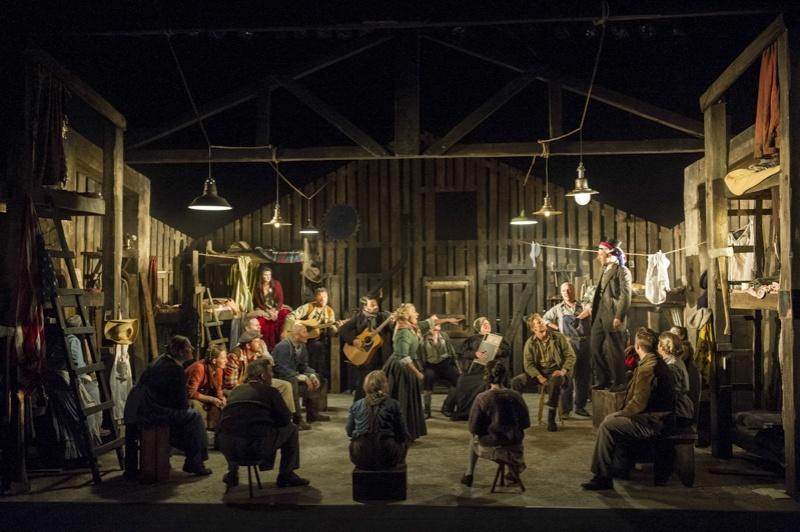 The single set is a barn in weathered timber – what an estate agent might call a live/work unit – with three-tiered bunks along the side and tools of the lumberjack trade lying around. It is always interesting to see how a production will deal with the Linbury’s limited black-box theatre, and here the orchestra has been placed behind the stage – the slatted barn allowing sound through, though not perhaps with the immediacy one might have wished.