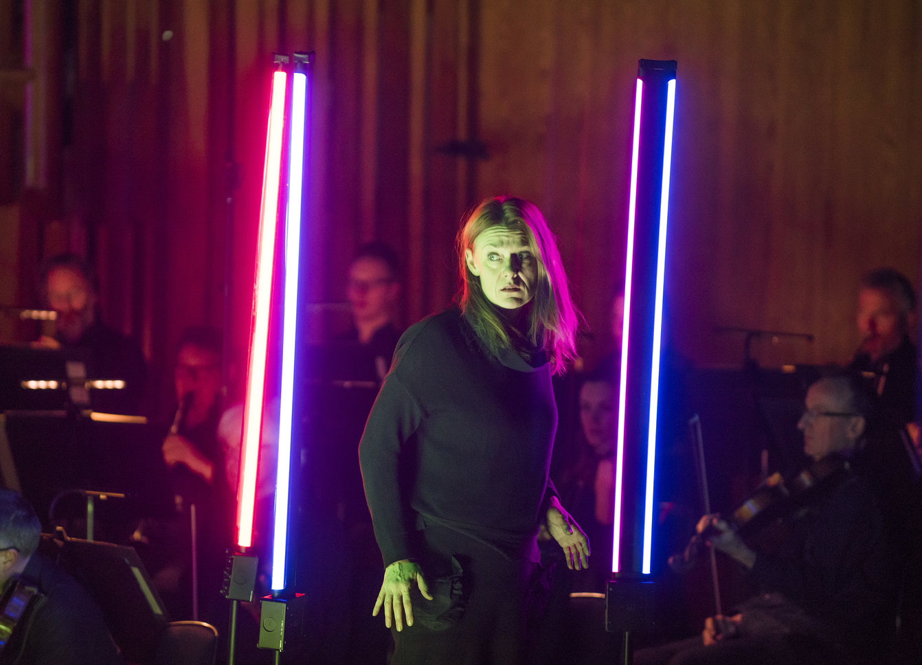 At the centre of it all, both musically and spatially, are the LSO. Fanning out across the entire width of the Barbican’s stage, they cradle the drama taking place amongst them. With violas and second violins taking the outer positions, closest to the audience, their hold is a deliberately soft one, cushioning the sharper, brighter, more pointed contributions of harp, oboe and first violins, and creating the finest of musical membranes around the sound.