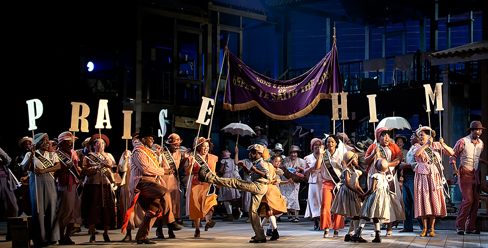 For all the individual talent on display, perhaps the ensemble as a whole did most to make this Porgy sing. Each of the big choral numbers blew us away as decisively as the fatal second-act storm (surely an inspiration for Britten) which provokes the final denouement. Just one example: the church picnic on Kittiwah Island, where the painterly set showed its versatility by morphing into a pier and boardwalk backed by glowing, shifting summer skies. Kudos, throughout, to video designer Luke Halls. Ballentine’s Sporting Life quipped and swaggered beautifully through the irreverent gags of “It ain’t necessarily so”. But then the smart ensemble work – with a baby’s cradle casually chucked away – and Serena’s stirring rebuttal (fabulous ferocity again from Latonia Moore) put his sceptic’s anthem in its true context as the special pleading of a manipulative rogue.