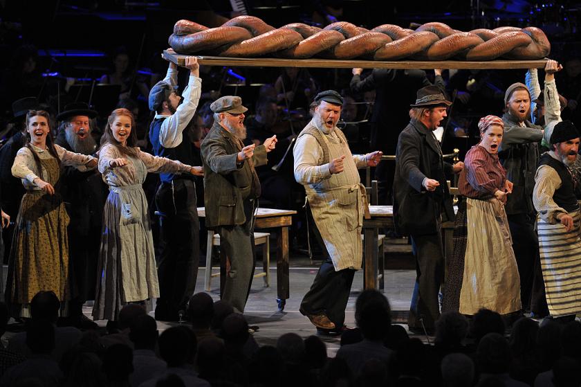 Other set-pieces worked better, thanks mostly to the superb negotiation of the space in front of the orchestra and dance routines (one pictured above) from the ever-dependable Lucy Burge, with just the right degree of Jewish and Russian nationalist traditional steps (Burge didn'tget a biography in the programme; nor did the original director Antony McDonald, though there was one for the Proms stager Peter Relton). At moments like this the spirits soared, but Fiddler on the Roof is too much a work of fits and starts for the magic to last for long. Bring back Grange Park Opera to the Proms, bring Garsington and Longborough too, but mike-free.