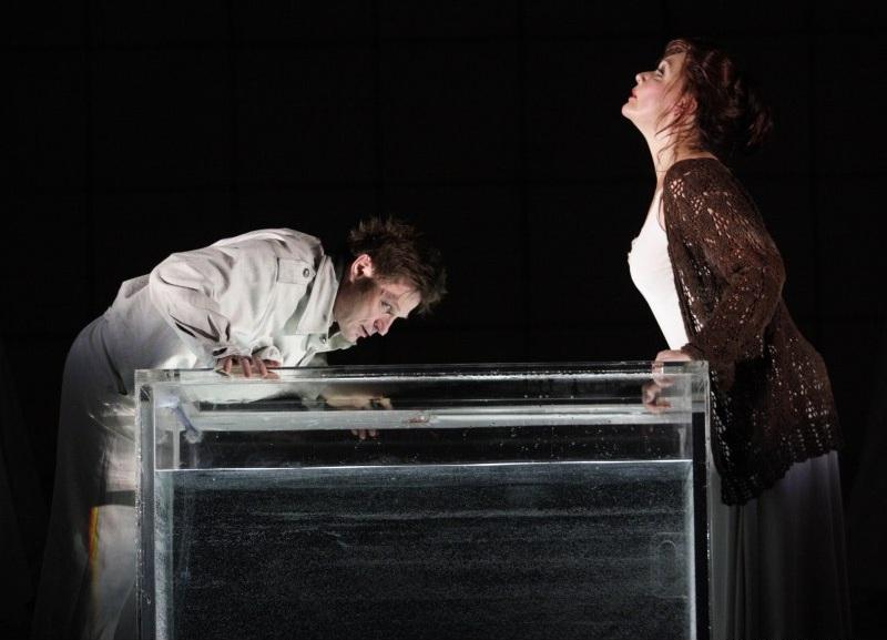 Not that it is short of memorable and affecting touches: thanks to the illusionist’s trick of a large angled mirror, Marie first appears pinned to the back wall like a butterfly; in a grizzly coup de theatre, Wozzeck’s death ends with him suspended in a bloody aquarium like a specimen. But there is very little of the mundane, impoverished normality which might allow us to see Wozzeck as a broken human being, rather than just a symbol amid a sea of symbols.